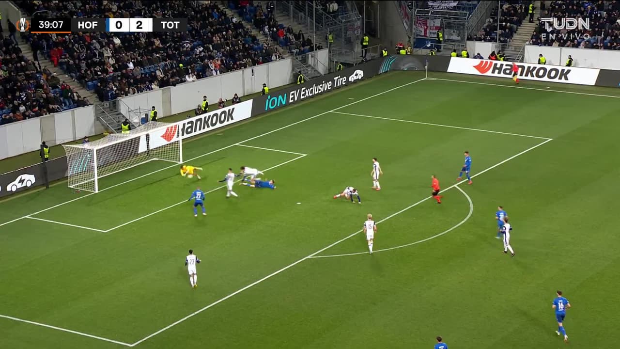 Tiro atajado por abajo a la izquierda. Max Moerstedt (TSG 1899 Hoffenheim) Disparo con la derecha desde el centro del área.
