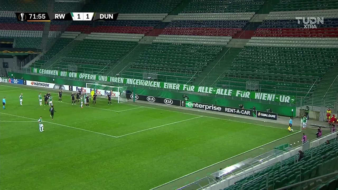 Tiro atajado. Maximilian Hofmann (SK Rapid Wien) disparo de cabeza desde el centro del área.
