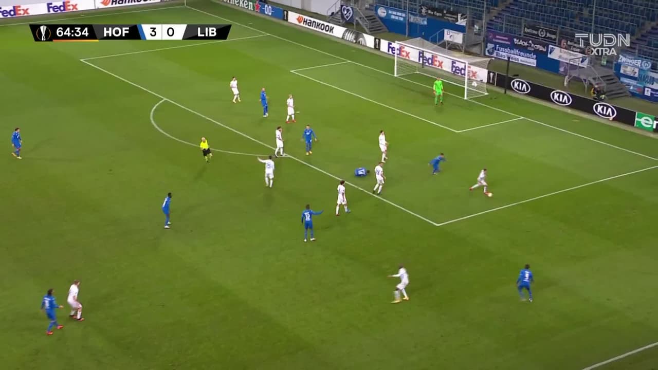 Tiro atajado. Mijat Gacinovic (TSG 1899 Hoffenheim) Disparo con la derecha desde fuera del área.