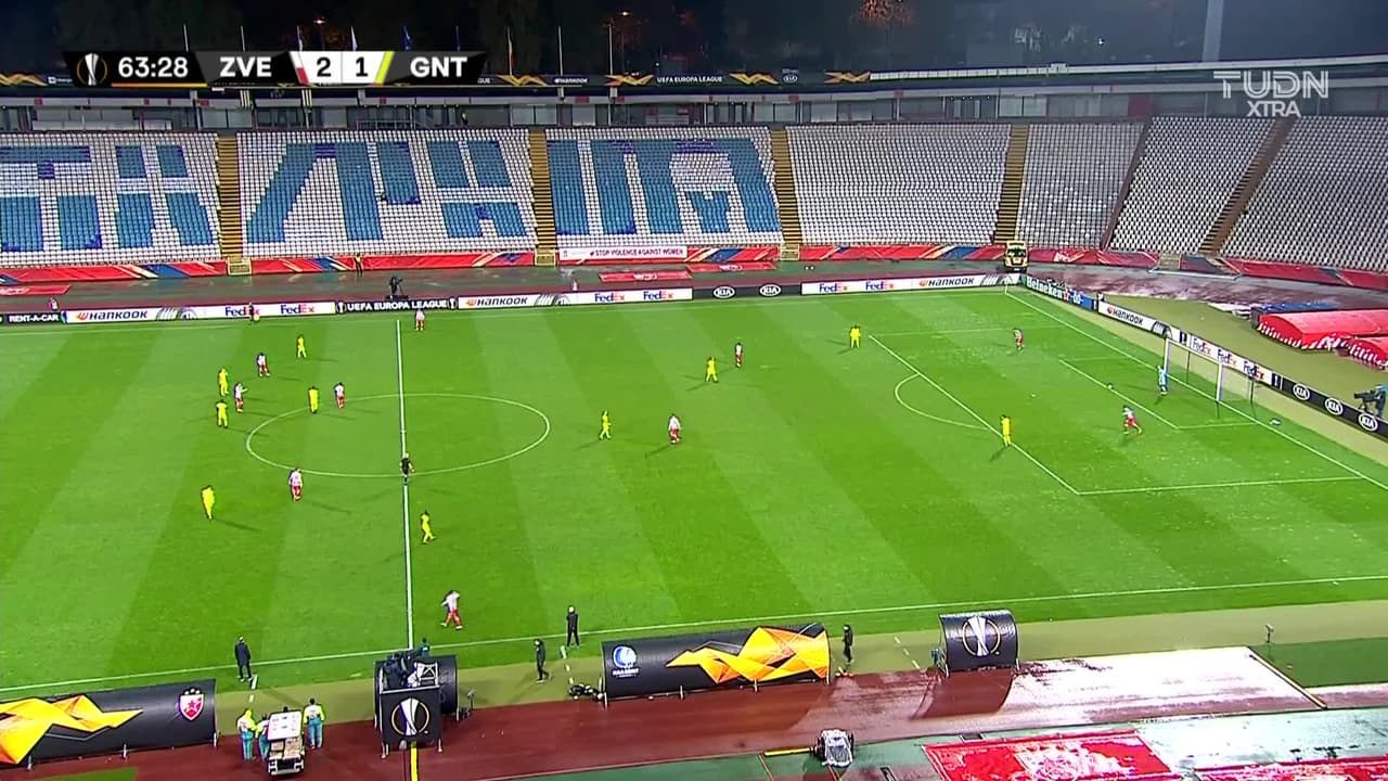 Tiro atajado raso al centro del arco. Milan Gajic (Estrella Roja de Belgrado) Disparo con la derecha desde fuera del área. Asistencia de Diego Falcinelli.