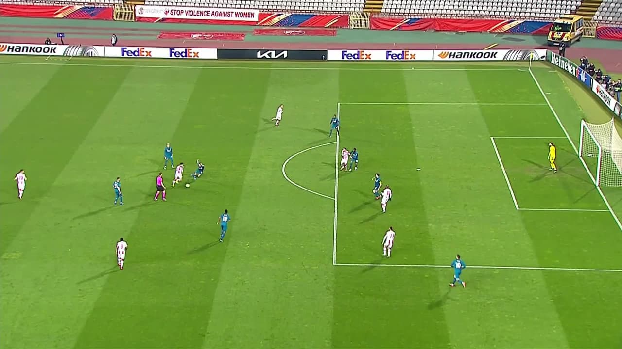 Tiro atajado por abajo a la izquierda. Mirko Ivanic (Estrella Roja de Belgrado) Disparo con la derecha desde fuera del área. Asistencia de Guélor Kanga Kaku.