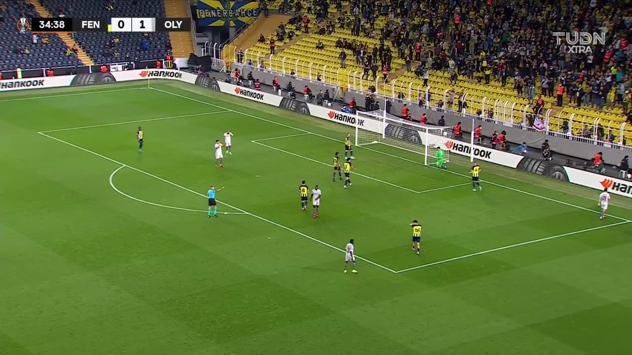 Tiro atajado junto al lado derecho de la portería. Mohamed Mady Camara (Olympiakos) Disparo con la derecha desde el centro del área. Asistencia de Giorgos Masouras.