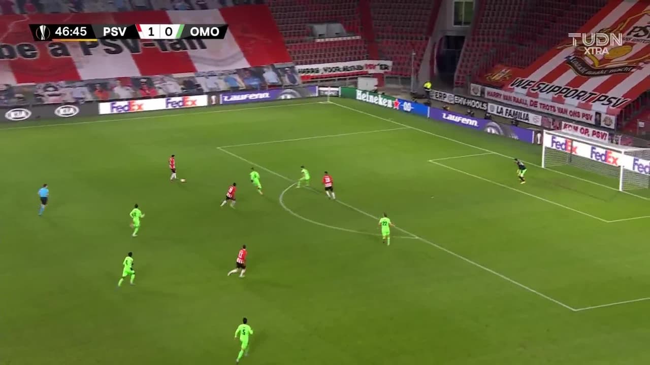 Tiro atajado junto al lado derecho de la portería. Mohamed Ihattaren (PSV Eindhoven) zurdazo desde el lado izquierdo dentro del área. Asistencia de Joël Piroe.