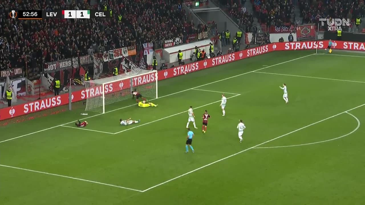Tiro atajado raso al centro del arco. Moussa Diaby (Bayer 04 Leverkusen) zurdazo desde el centro del área. Asistencia de Florian Wirtz.