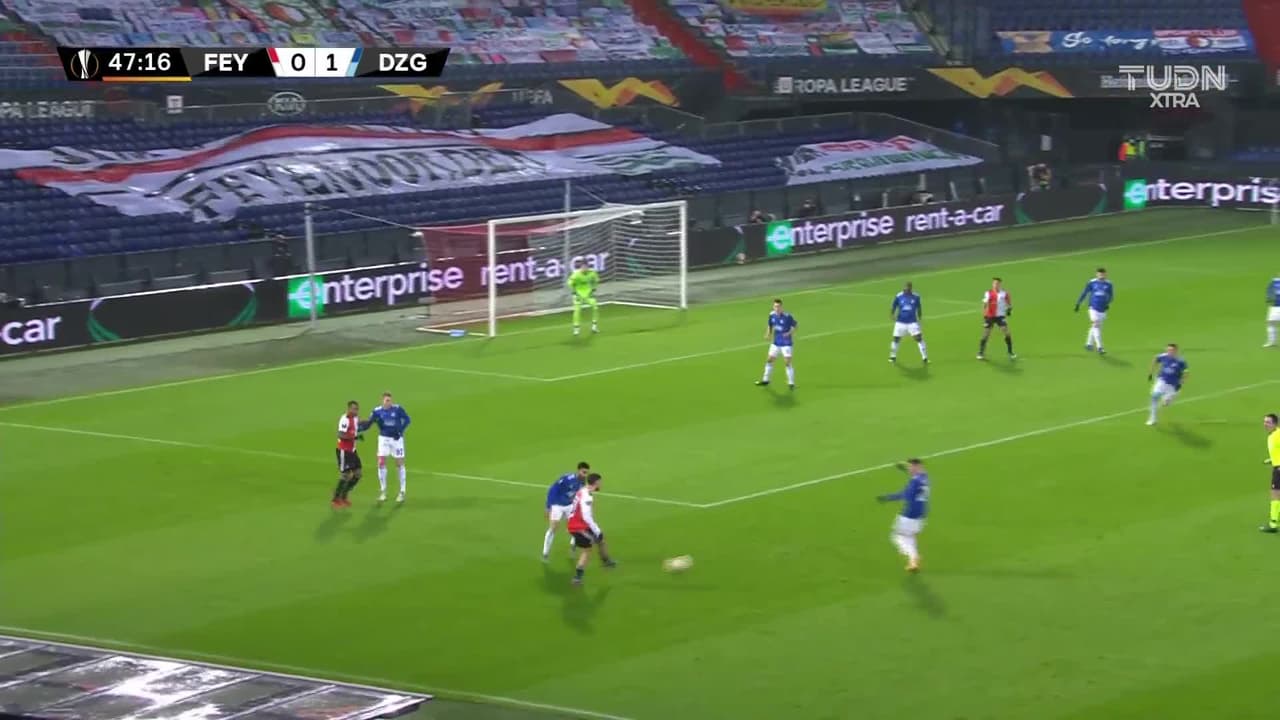 Tiro atajado. Naoufal Bannis (Feyenoord) Disparo con la derecha desde el centro del área.