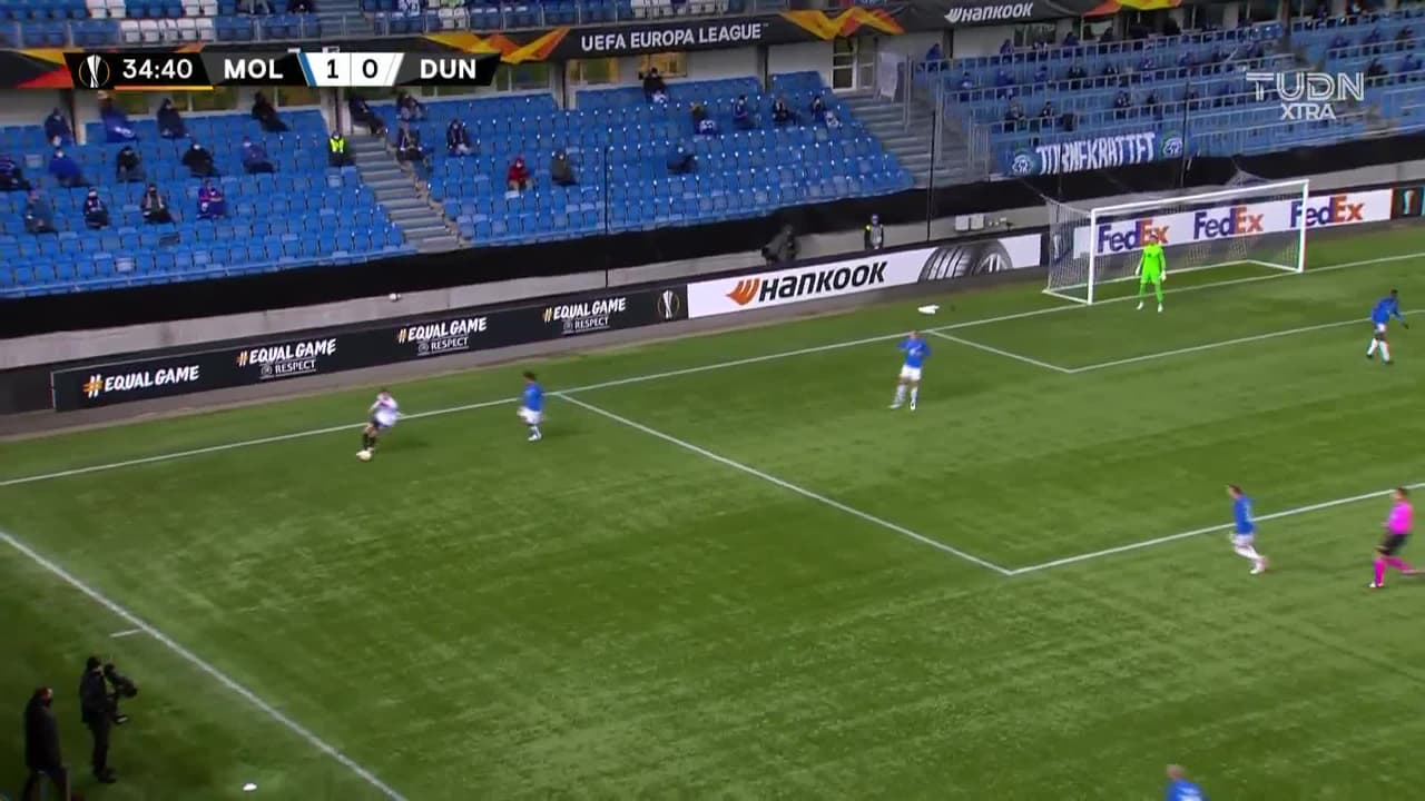 Tiro atajado al ángulo superior derecho. Kelede Nathan Oduwa (Dundalk) Disparo con la derecha desde la banda izquierda. Asistencia de Daniel Kelly.