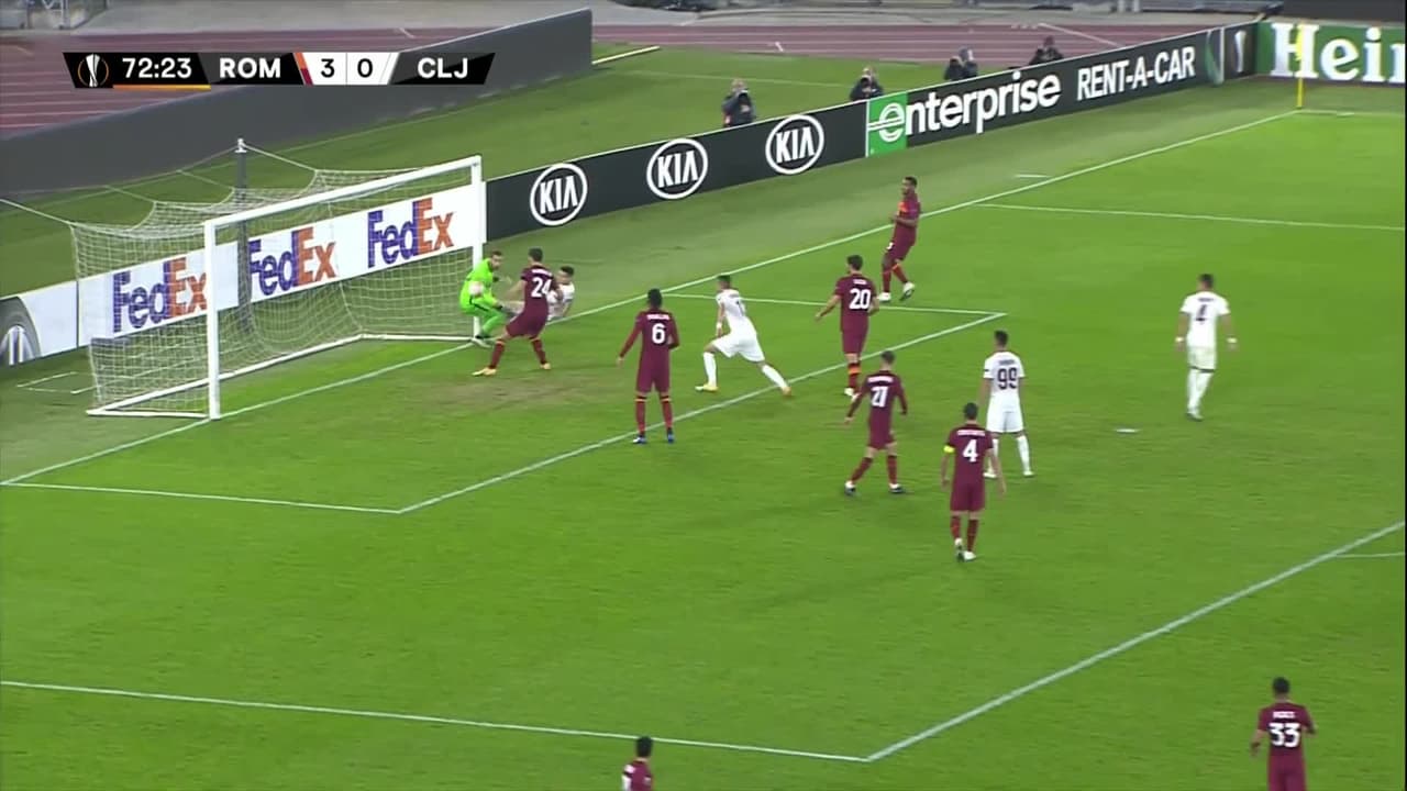 Tiro atajado junto al lado derecho de la portería. Nicolae Carnat (CFR Cluj) Disparo con la derecha a quemarropa desde el lado derecho. Asistencia de Michael Pereira con un centro al área.