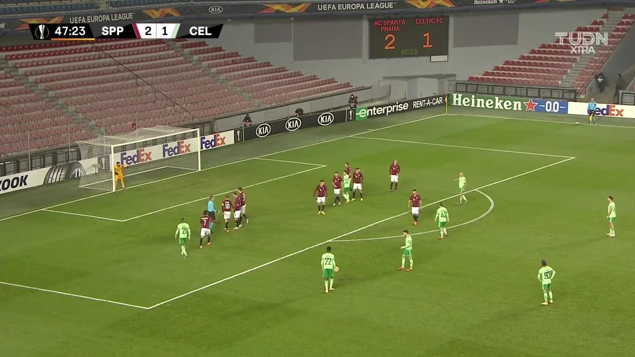Tiro atajado por abajo a la izquierda. Odsonne Edouard (Celtic) Disparo con la derecha desde fuera del área.