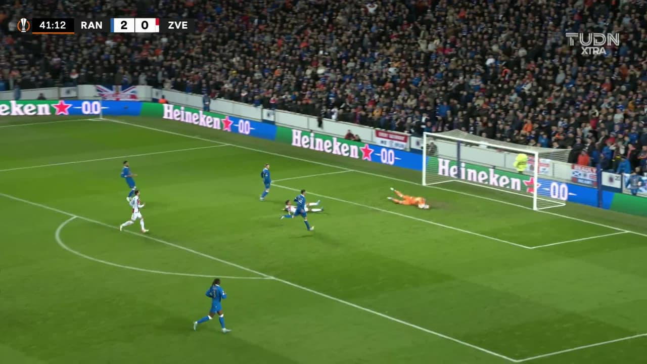 Tiro atajado raso al centro del arco. Ohi Omoijuanfo (Estrella Roja de Belgrado) Disparo con la derecha desde el centro del área. Asistencia de Milan Rodic pase largo.