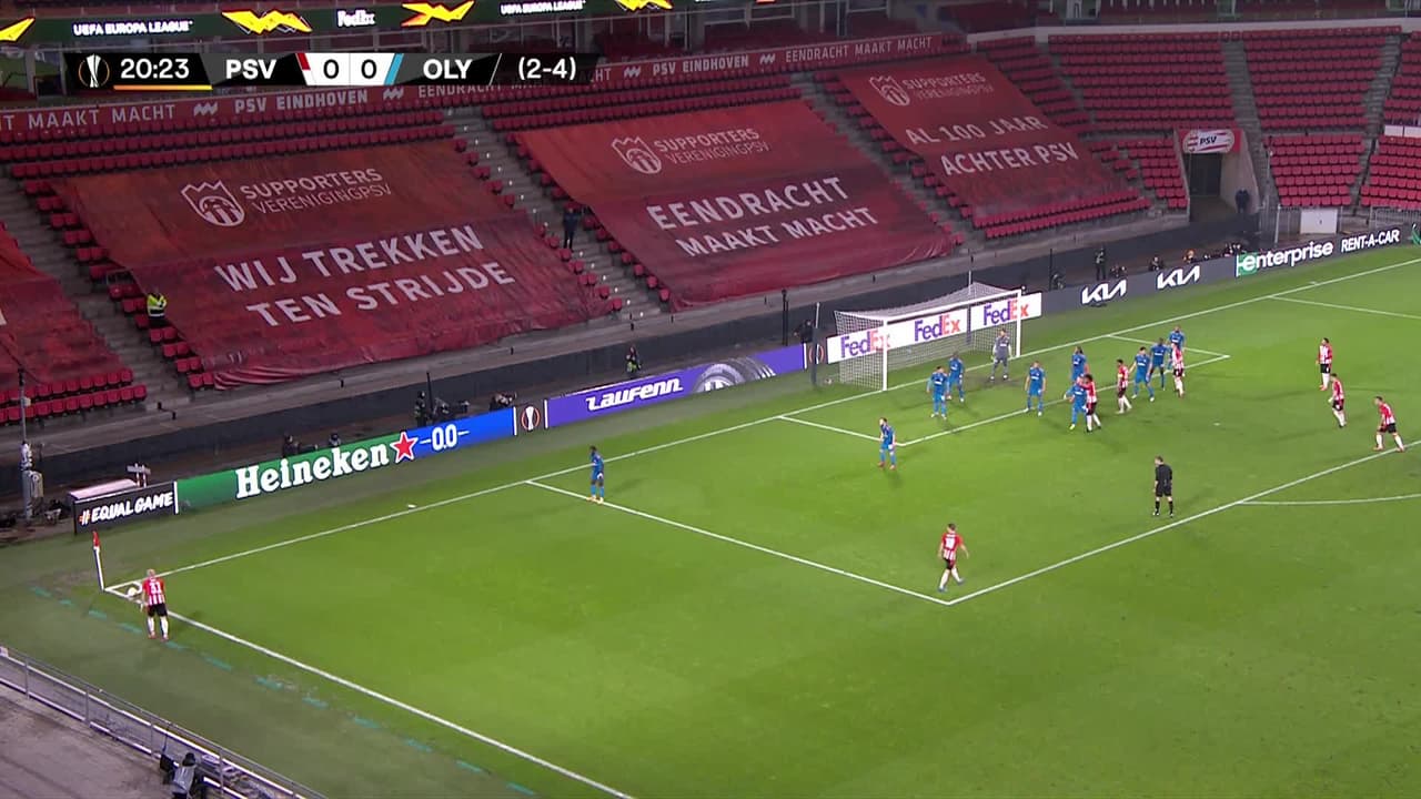 Tiro atajado al ángulo superior derecho. Olivier Boscagli (PSV Eindhoven) con un tiro desde muy cerca. Asistencia de Philipp Max con un centro al área.