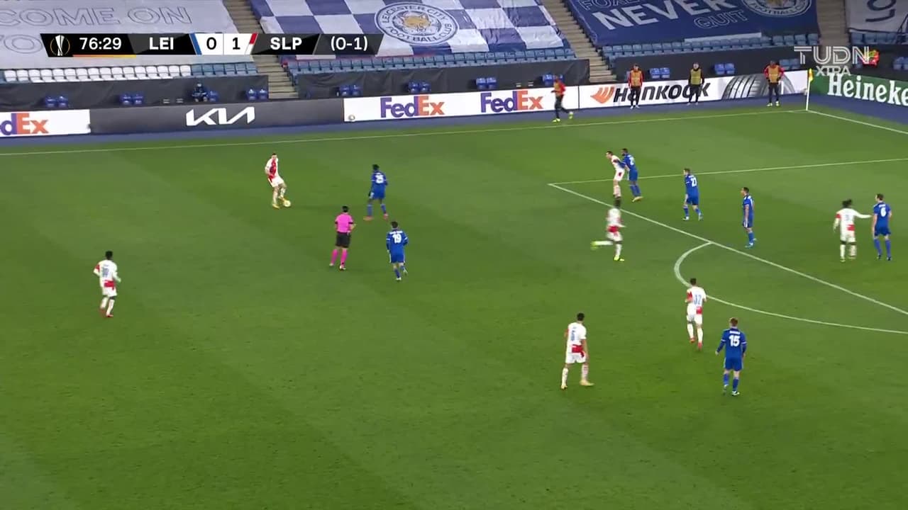 Tiro atajado raso al centro del arco. Murphy Oscar Dorley (Slavia Prague) zurdazo desde fuera del área. Asistencia de Lukáš Provod.