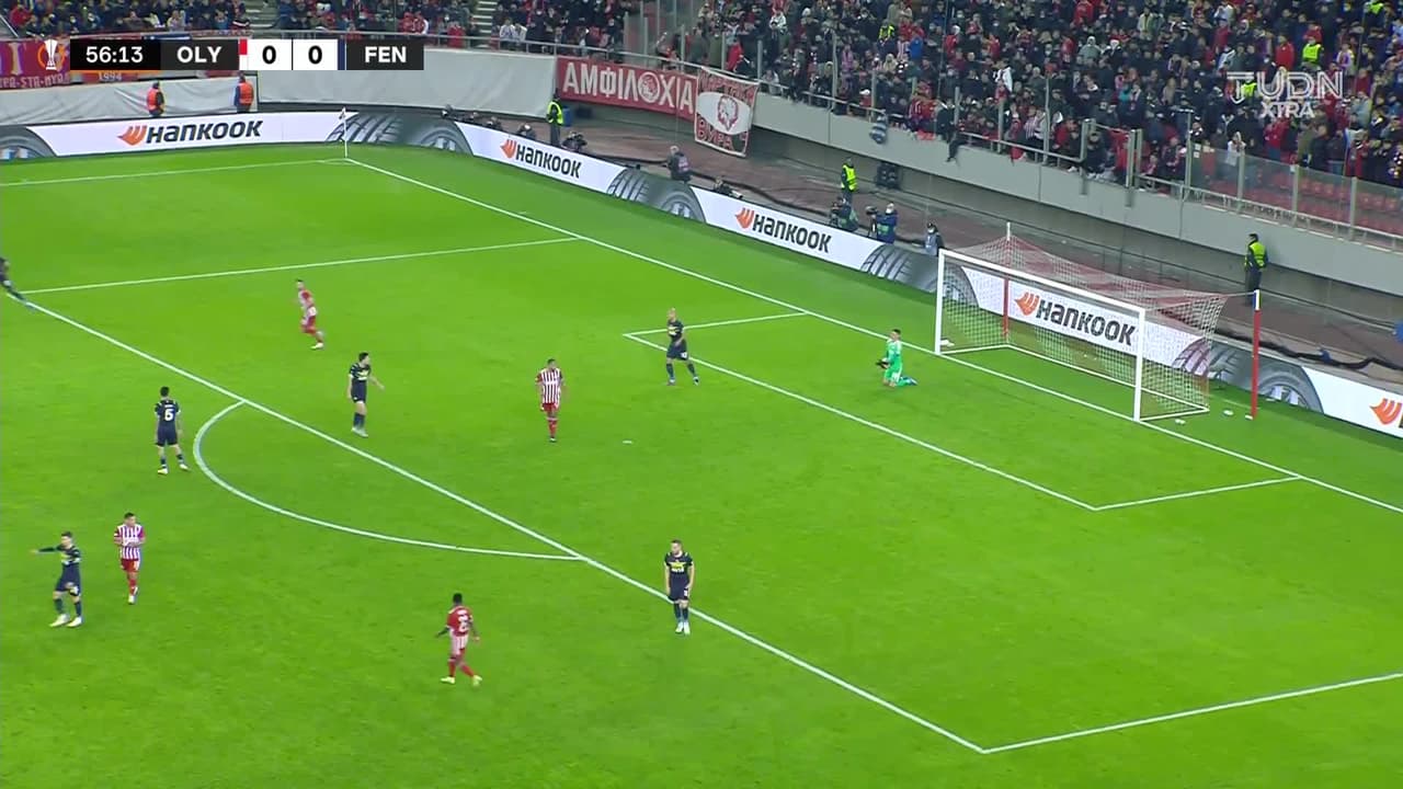 Tiro atajado. Pape Abou Cissé (Olympiakos) zurdazo desde fuera del área.