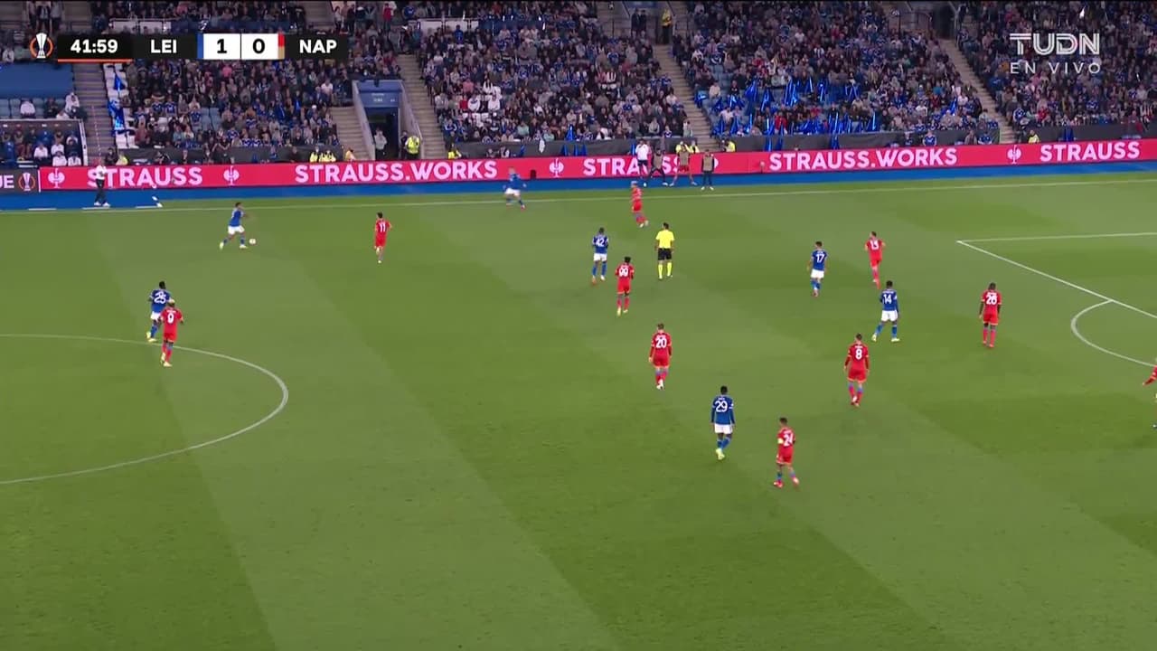 Remate parado bajo palos a rás de suelo. Patson Daka (Leicester City) remate con la izquierda desde el lado derecho del interior del área. Asistencia de Timothy Castagne con un pase de cabeza.