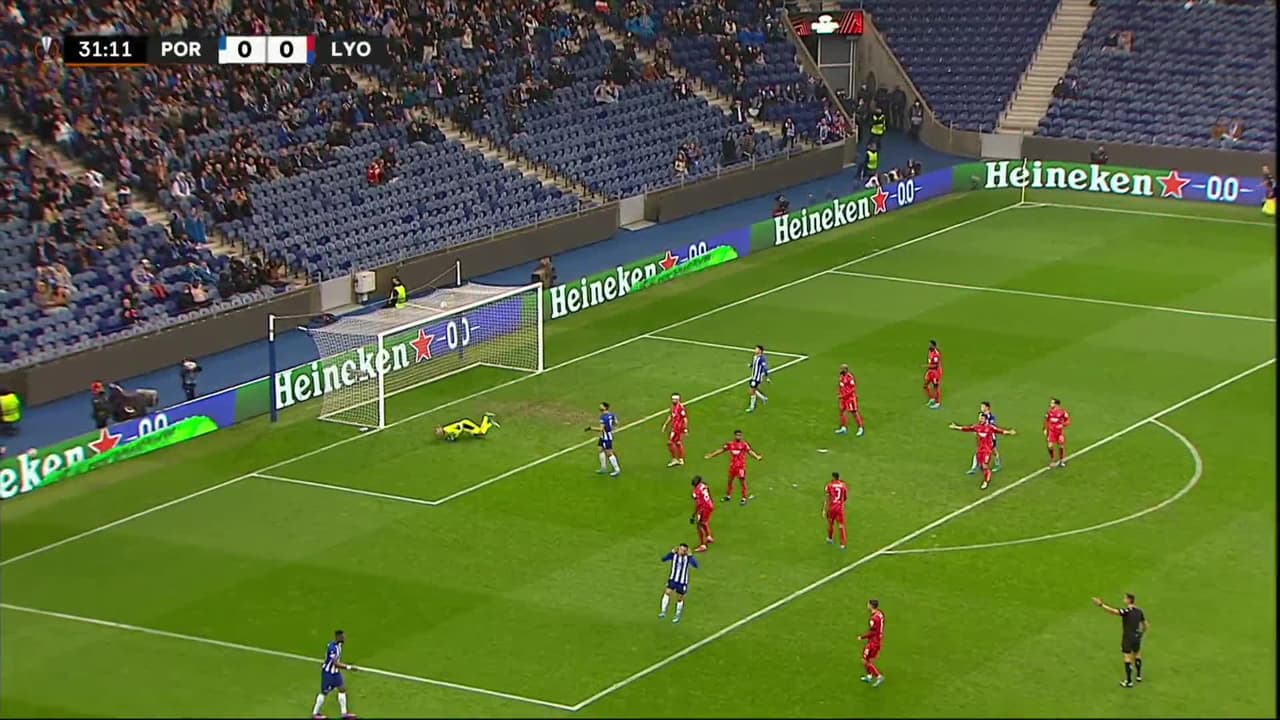 Tiro atajado al ángulo superior derecho. Pepê Aquino (FC Porto) zurdazo desde fuera del área.
