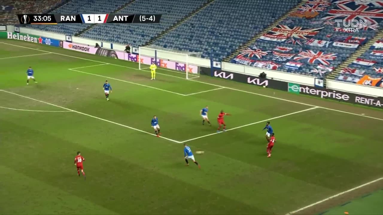 Tiro atajado raso al centro del arco. Pieter Gerkens (Royal Antwerp) zurdazo desde fuera del área. Asistencia de Aurélio Buta.