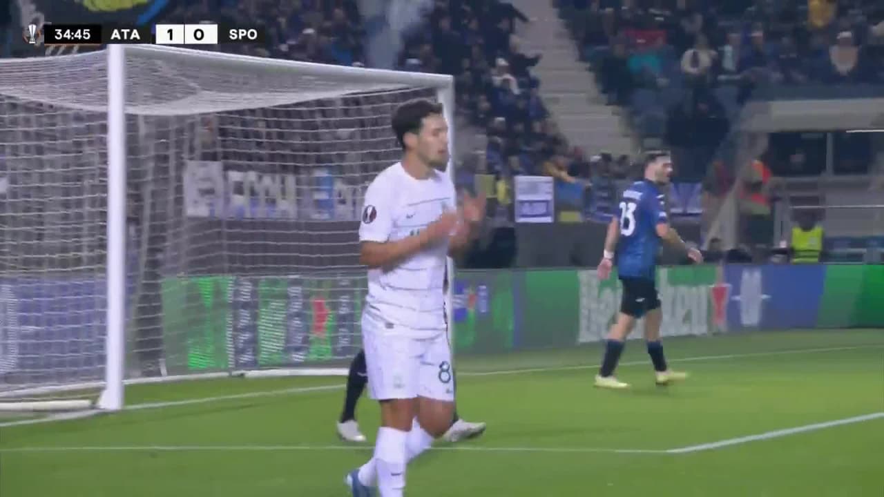 Tiro atajado. Pote (Sporting Lisbon) zurdazo desde el lado izquierdo dentro del área.