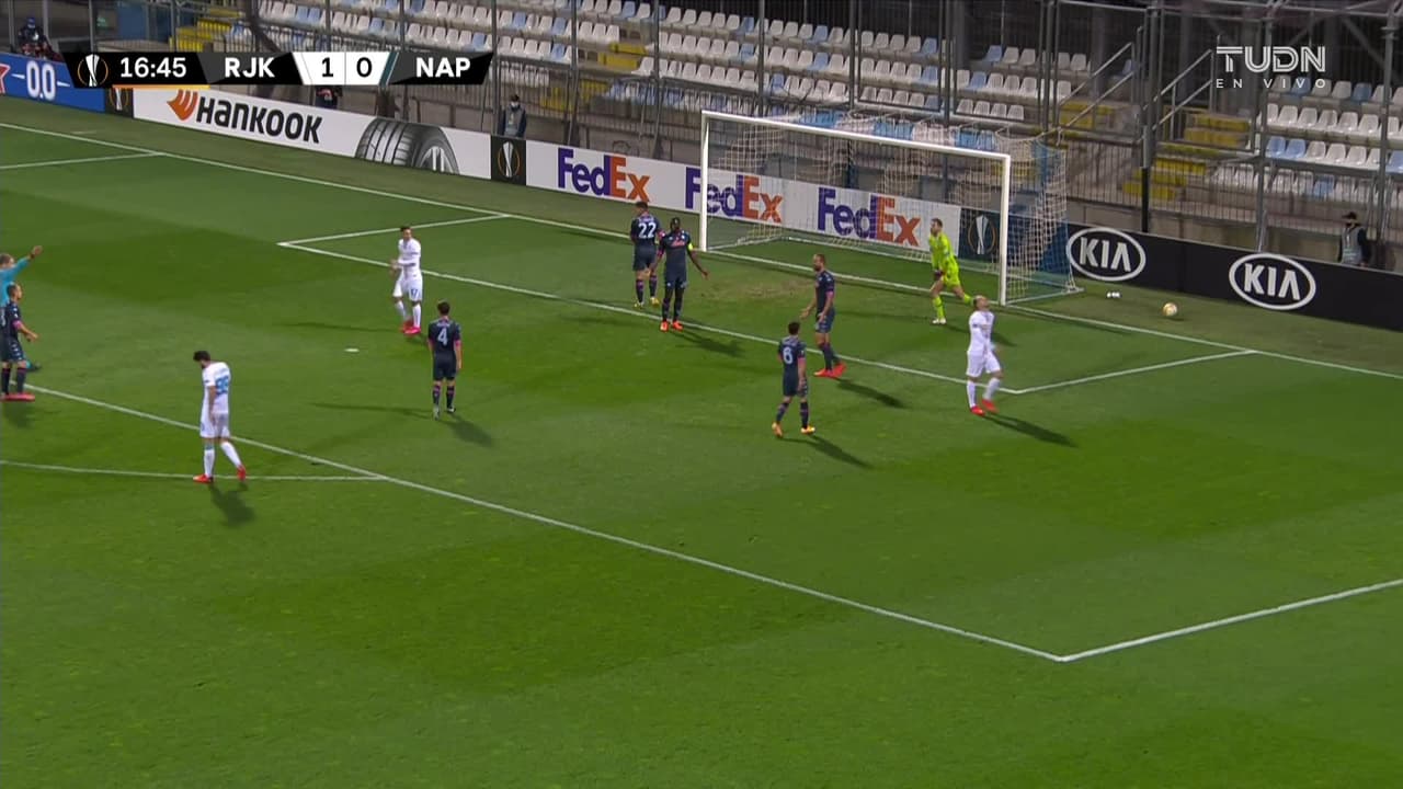 Tiro atajado. Robert Muric (HNK Rijeka) Disparo con la derecha desde el centro del área.