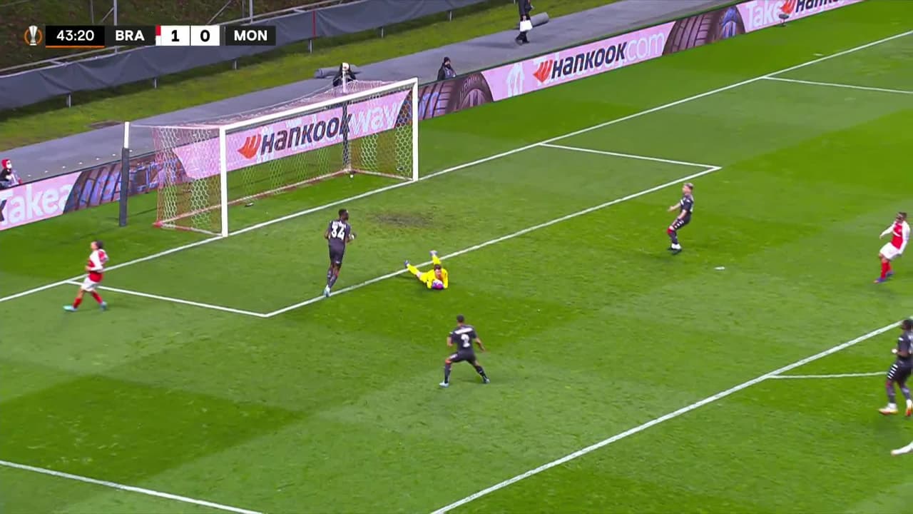 Tiro atajado. Rodrigo Gomes (Sporting Braga) Disparo con la derecha desde el centro del área.