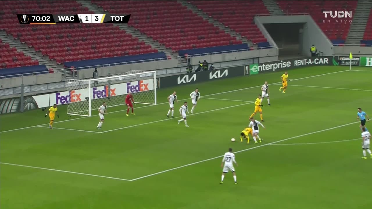 Tiro atajado. Steven Bergwijn (Tottenham Hotspur) zurdazo sin ángulo desde la izquierda.
