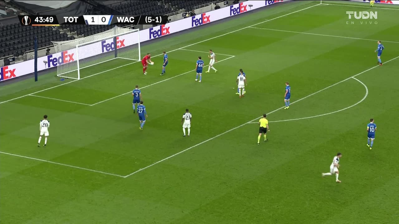 Tiro atajado raso al centro del arco. Steven Bergwijn (Tottenham Hotspur) Disparo con la derecha desde el lado izquierdo dentro del área. Asistencia de Dele Alli.