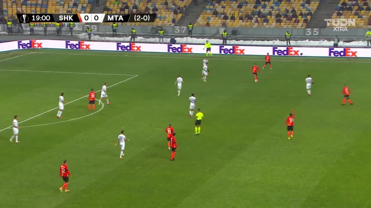 Tiro atajado por abajo a la izquierda. Taison (Shakhtar Donetsk) zurdazo desde fuera del área. Asistencia de Marlos.