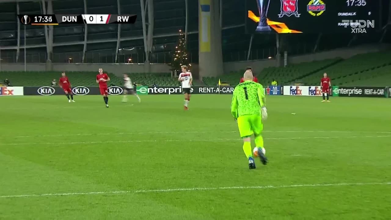 Tiro atajado. Taxiarchis Fountas (SK Rapid Wien) zurdazo desde fuera del área.
