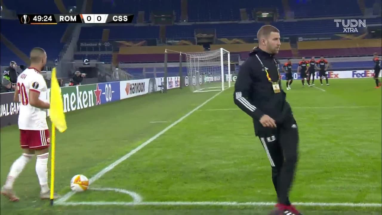 Tiro atajado raso al centro del arco. Younousse Sankharé (CSKA Sofia) disparo de cabeza desde muy cerca. Asistencia de Amos Youga con un centro al área.
