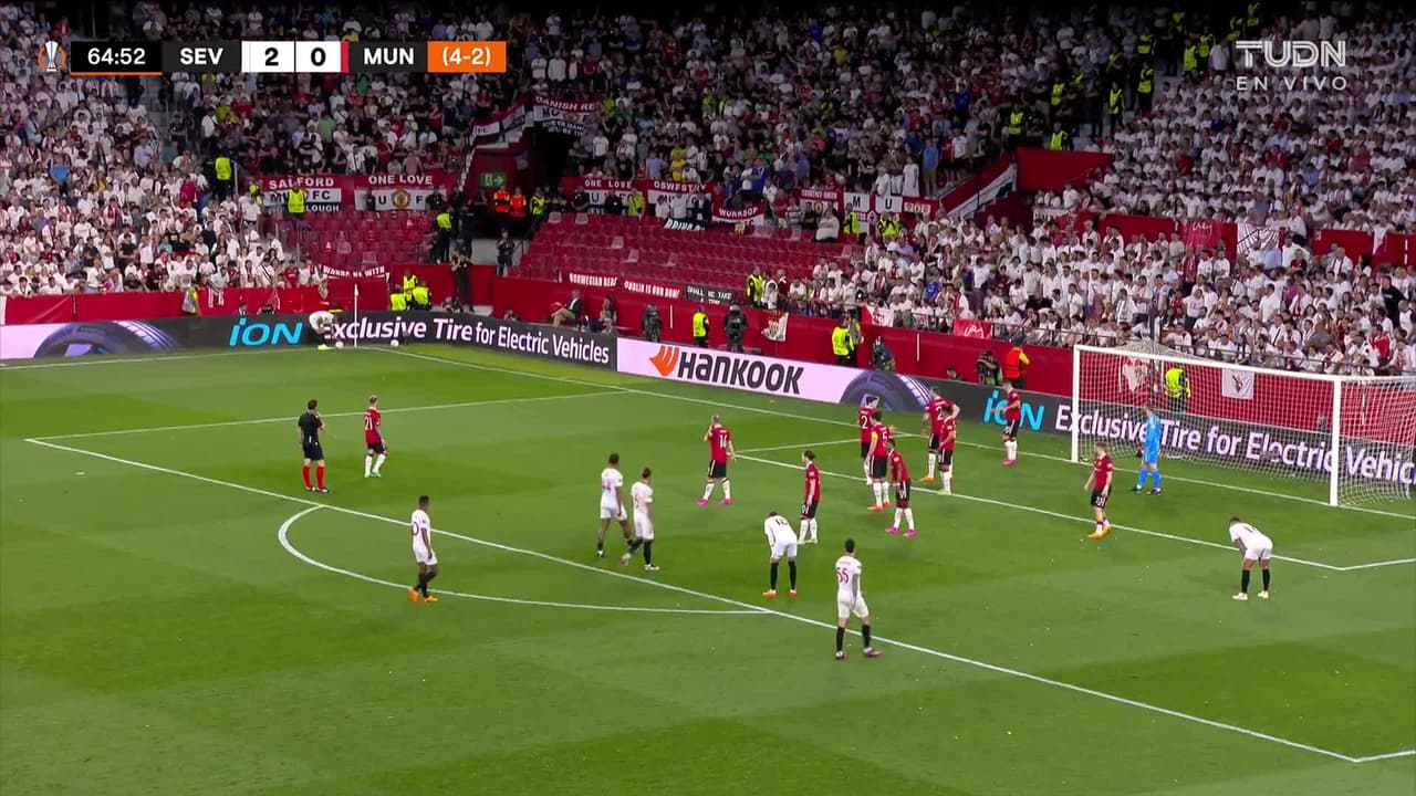 Tiro atajado raso al centro del arco. Youssef En-Nesyri (Sevilla) disparo de cabeza desde el centro del área. Asistencia de Suso con un centro al área.