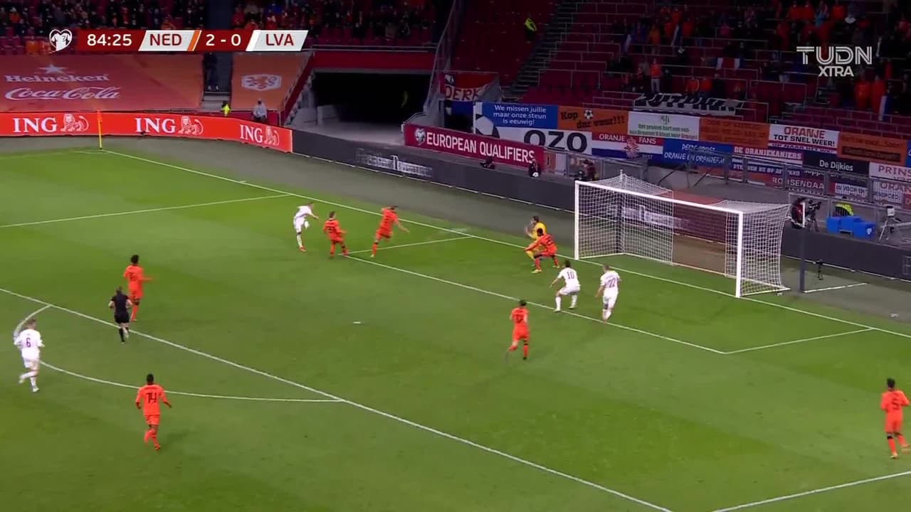 Andrejs Ciganiks (Letonia) remata palo| zurdazo desde el lado izquierdo dentro del área.