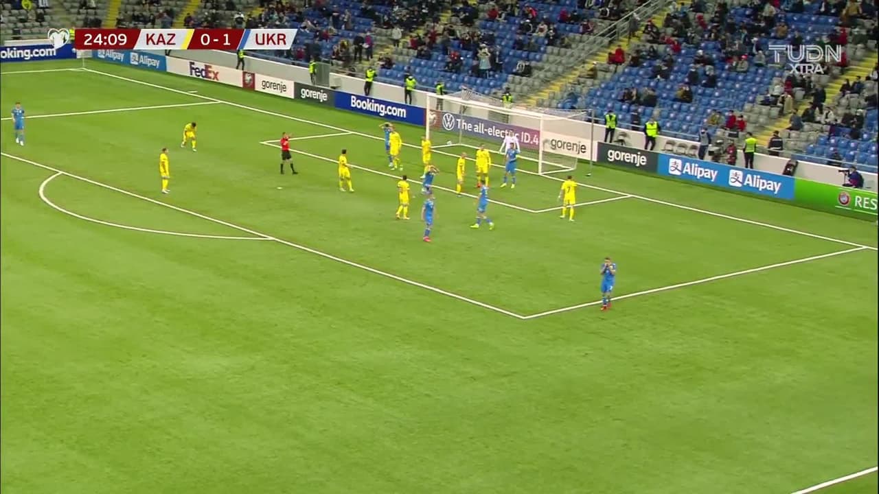 Andriy Yarmolenko (Ucrania) remata al poste izquierdo, remate con la izquierda desde el centro del área. Asistencia de Vitaliy Buyalskiy con un centro al área.
