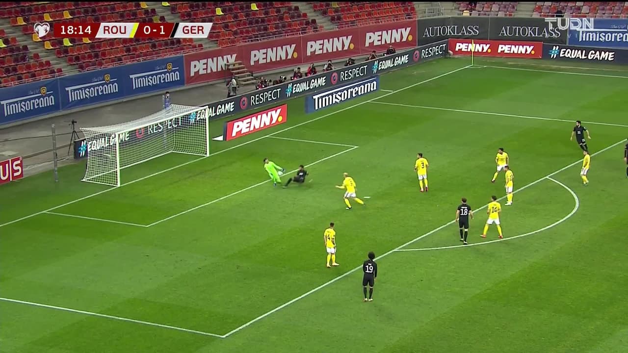 Joshua Kimmich (Alemania) remata palo| Disparo con la derecha desde fuera del área.