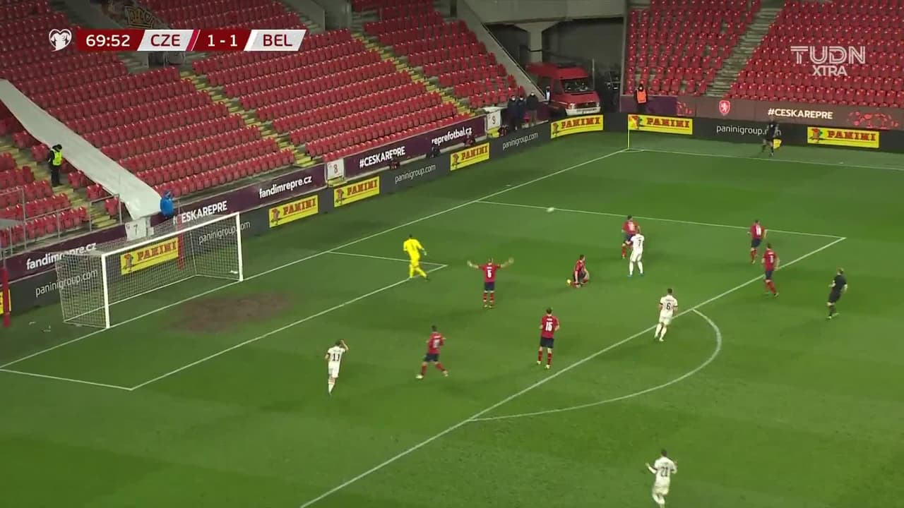 Kevin De Bruyne (Bélgica) remata palo| Disparo con la derecha desde el lado derecho dentro del área.