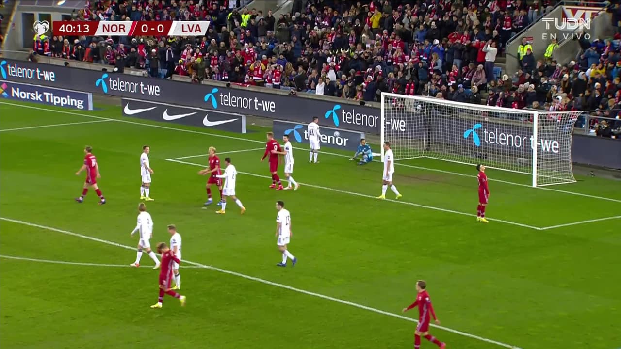 Kristian Thorstvedt (Noruega) remata al poste izquierdo| disparo de cabeza desde el centro del área. Asistencia de Martin Ødegaard con un centro al área.