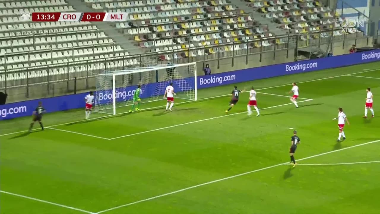 Mario Pasalic (Croacia) remata al travesaño| disparo de cabeza a quemarropa desde el lado izquierdo. Asistencia de Nikola Vlasic con un centro al área.