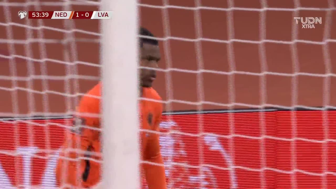 Matthijs de Ligt (Holanda) remata palo| disparo de cabeza desde el centro del área tras un saque de esquina.