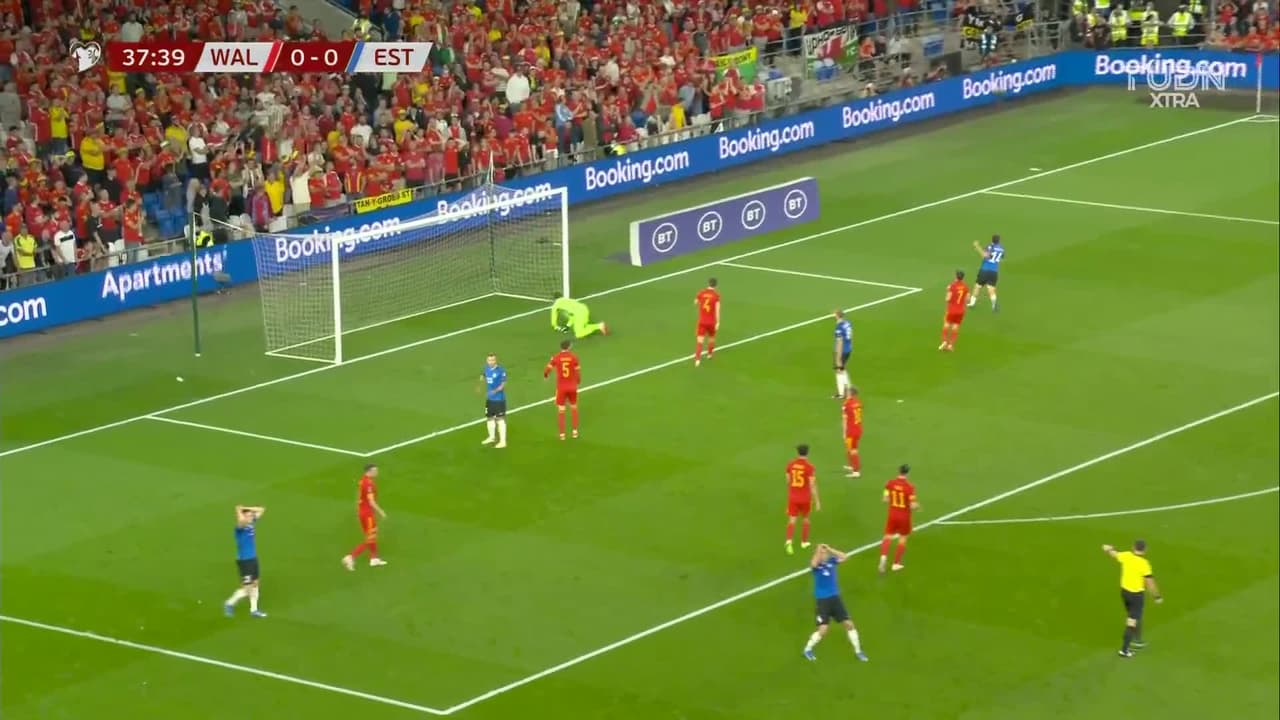 Mattias Käit (Estonia) remata al larguero| remate con la derecha desde fuera del área. Asistencia de Artur Pikk.