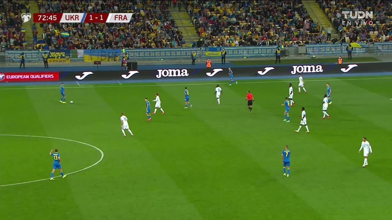 Roman Yaremchuk (Ucrania) remata poste, remate con la derecha desde el centro del área.