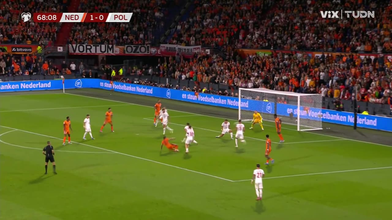 ¡CERCA SIMONS! Su disparo pasó rozando el poste del arco polaco