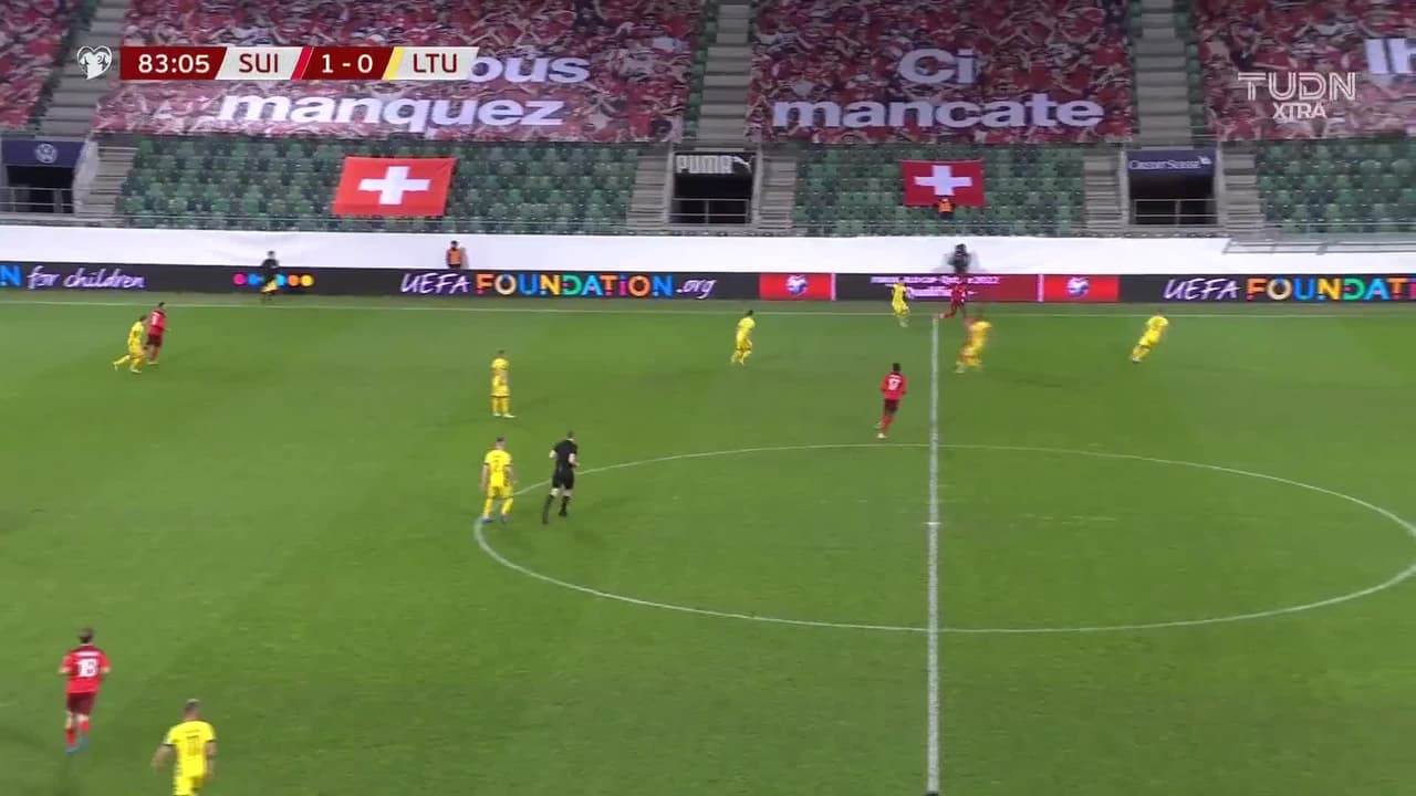 Steven Zuber (Suiza) remata al poste izquierdo| Disparo con la derecha desde fuera del área. Asistencia de Denis Zakaria con un pase de cabeza.