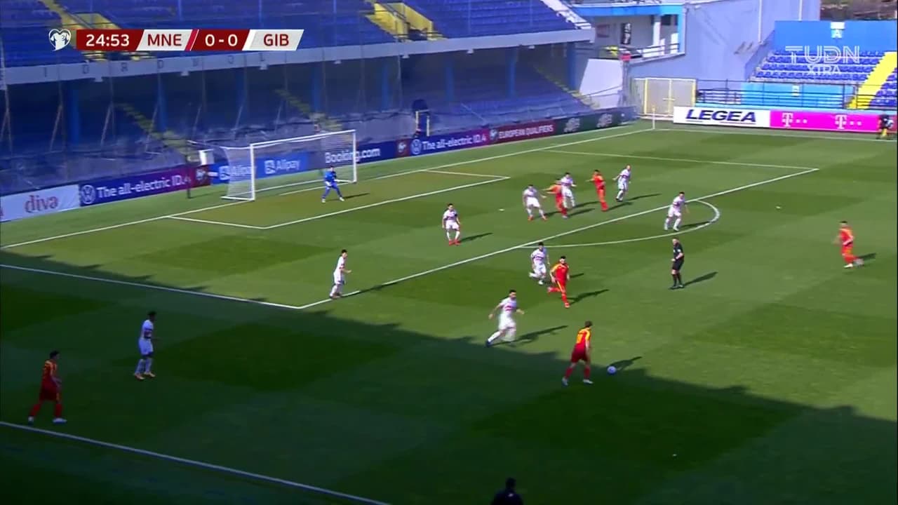 Uros Djurdjevic (Montenegro) remata al poste derecho| disparo de cabeza desde el centro del área. Asistencia de Nebojsa Kosovic con un centro al área.