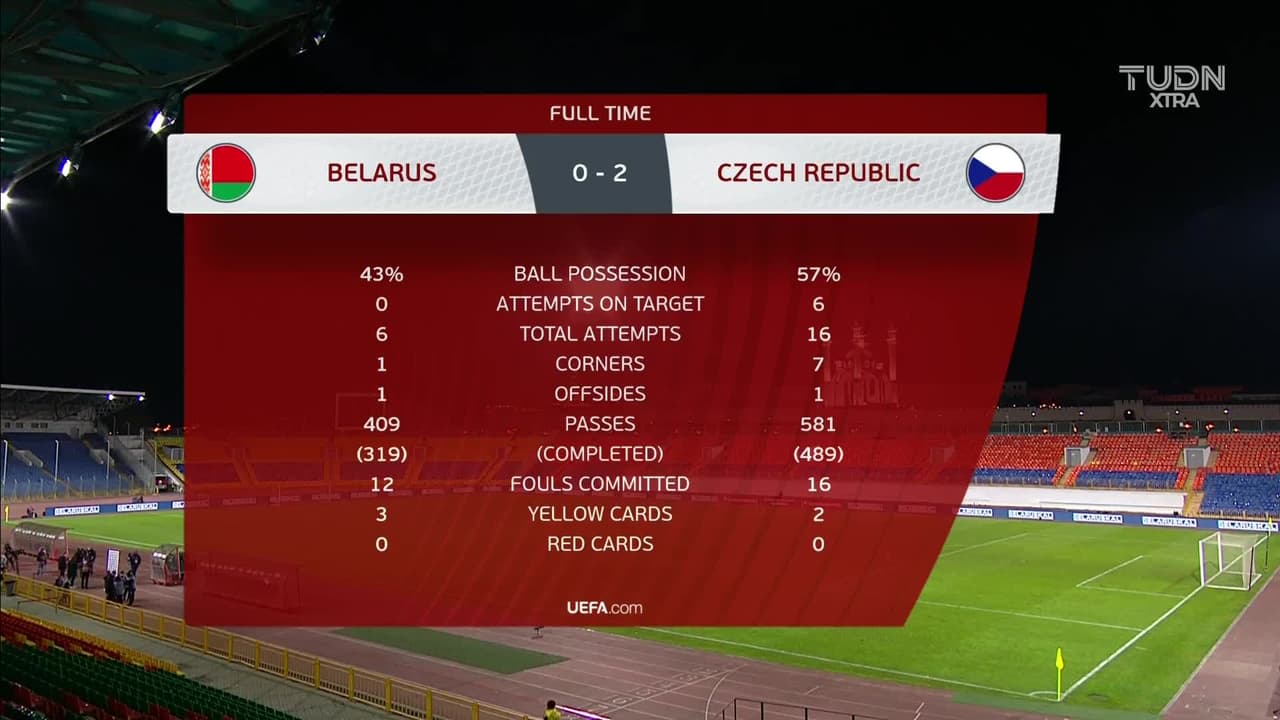 Final del partido' Bielorrusia 0| República Checa 2.