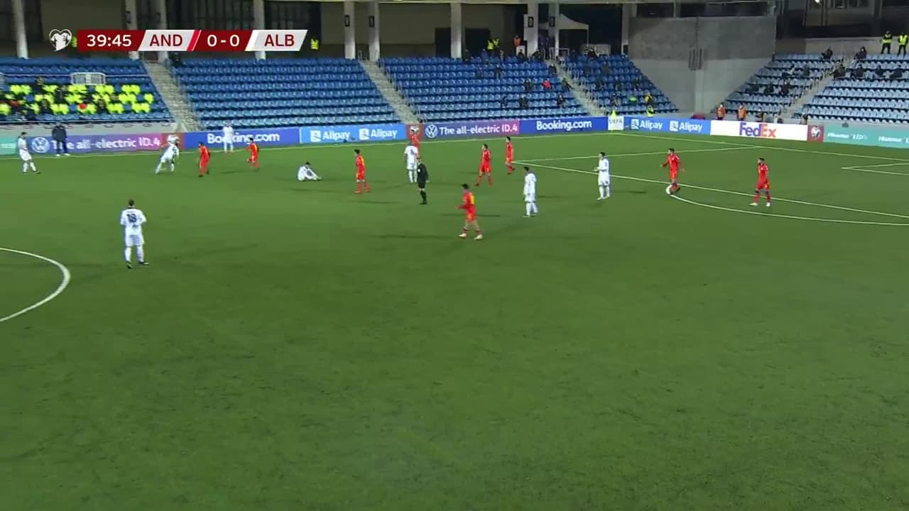 ¡Gol! Andorra 0| Albania 1. Ermir Lenjani (Albania) zurdazo desde el centro del área.