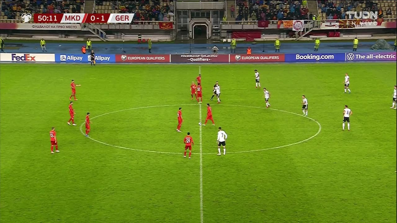 ¡Gol! Macedonia 0| Alemania 1. Kai Havertz (Alemania) zurdazo desde el centro del área disparo rastrero| junto al palo izquierdo. Asistencia de Thomas Müller tras un contragolpe.