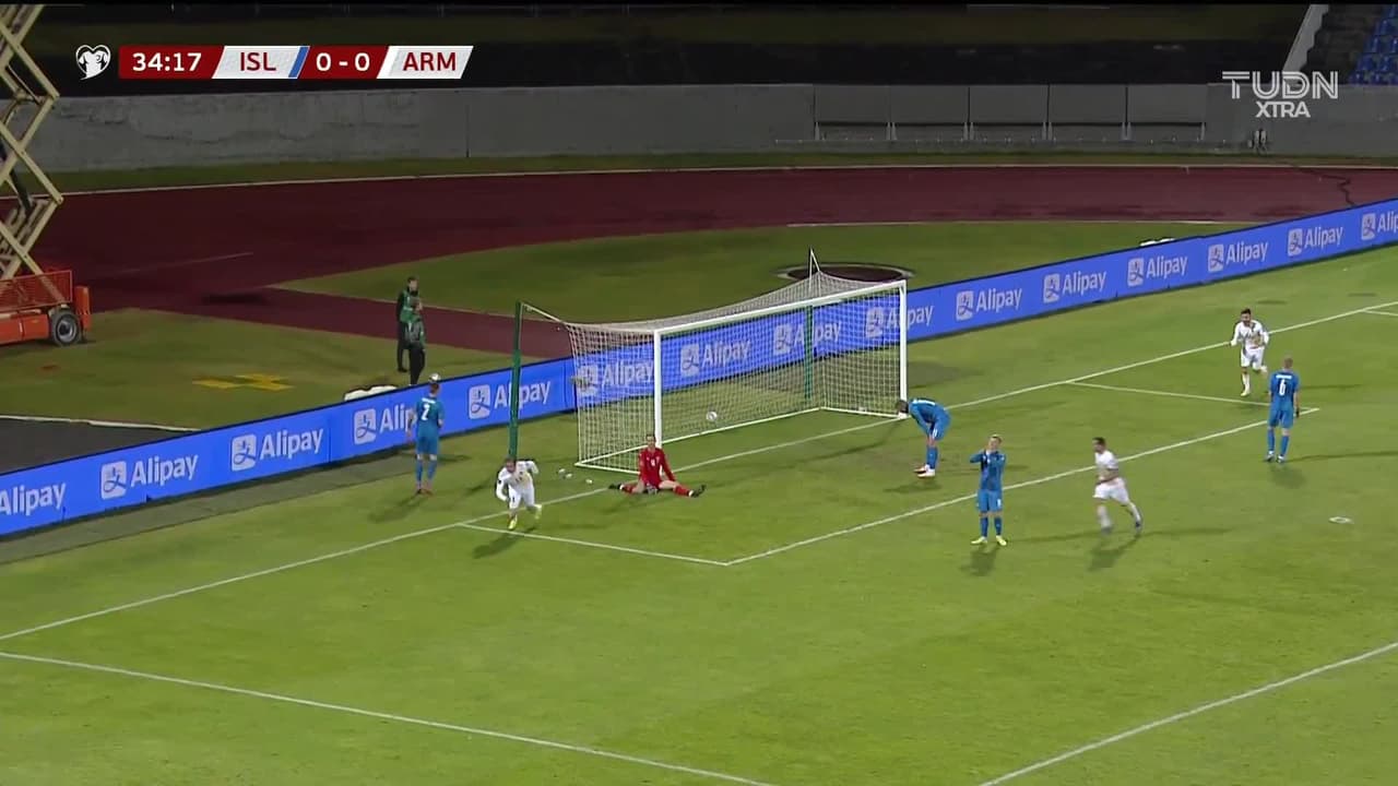 ¡Gol! Islandia 0| Armenia 1. Kamo Hovhannisyan (Armenia) zurdazo a quemarropa desde el lado izquierdo.