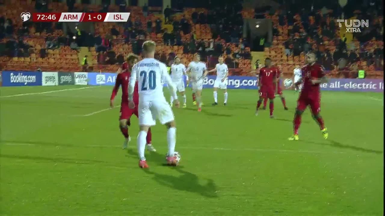 ¡Gol! Armenia 2| Islandia 0. Khoren Bayramyan (Armenia) zurdazo desde el lado izquierdo dentro del área.