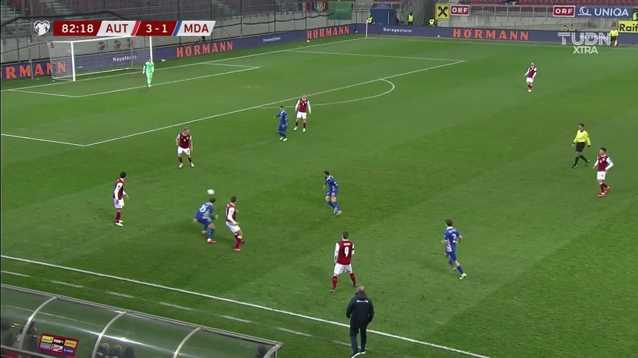 ¡Gol! Austria 4| Moldova 1. Dejan Ljubicic (Austria) Disparo con la derecha desde fuera del área.