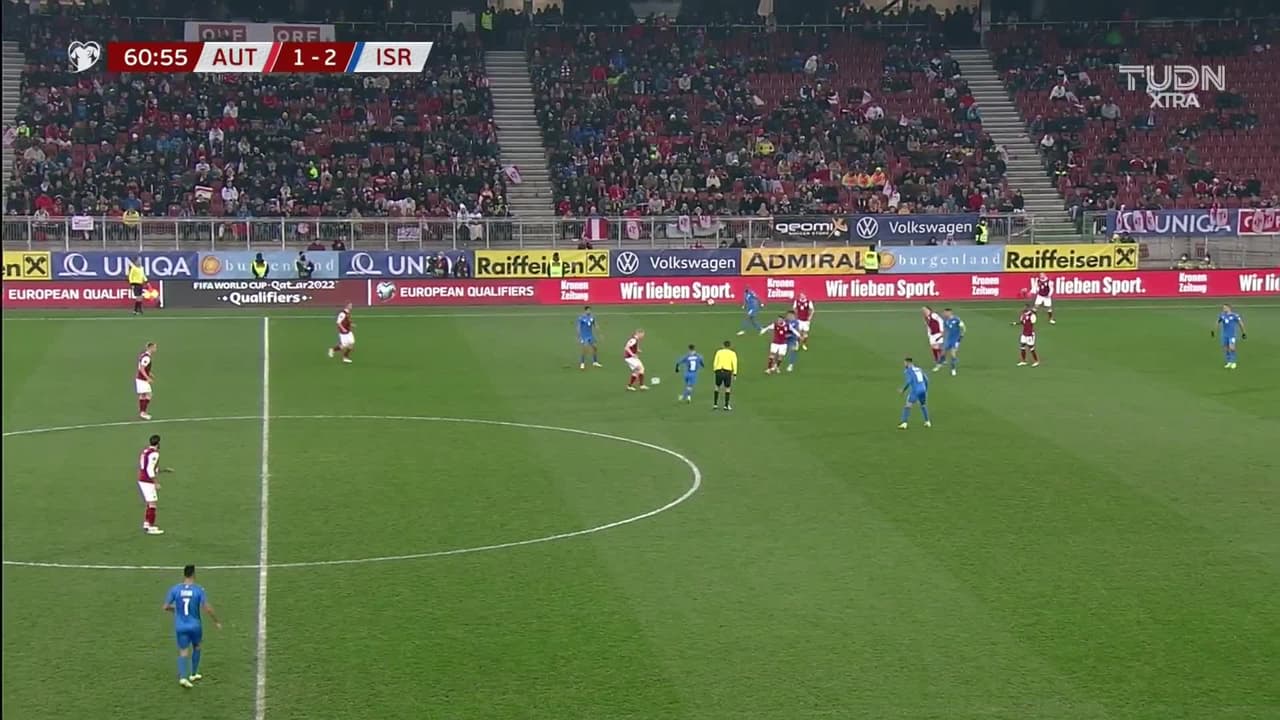¡Gol! Austria 2| Israel 2. Louis Schaub (Austria) zurdazo desde fuera del área.