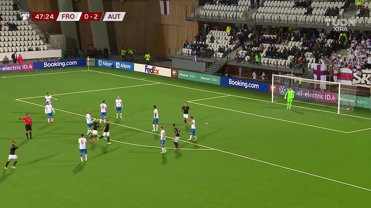 ¡Gol! Islas Faroe 0| Austria 2. Marcel Sabitzer (Austria) zurdazo desde fuera del área disparo rastrero| junto al palo izquierdo.