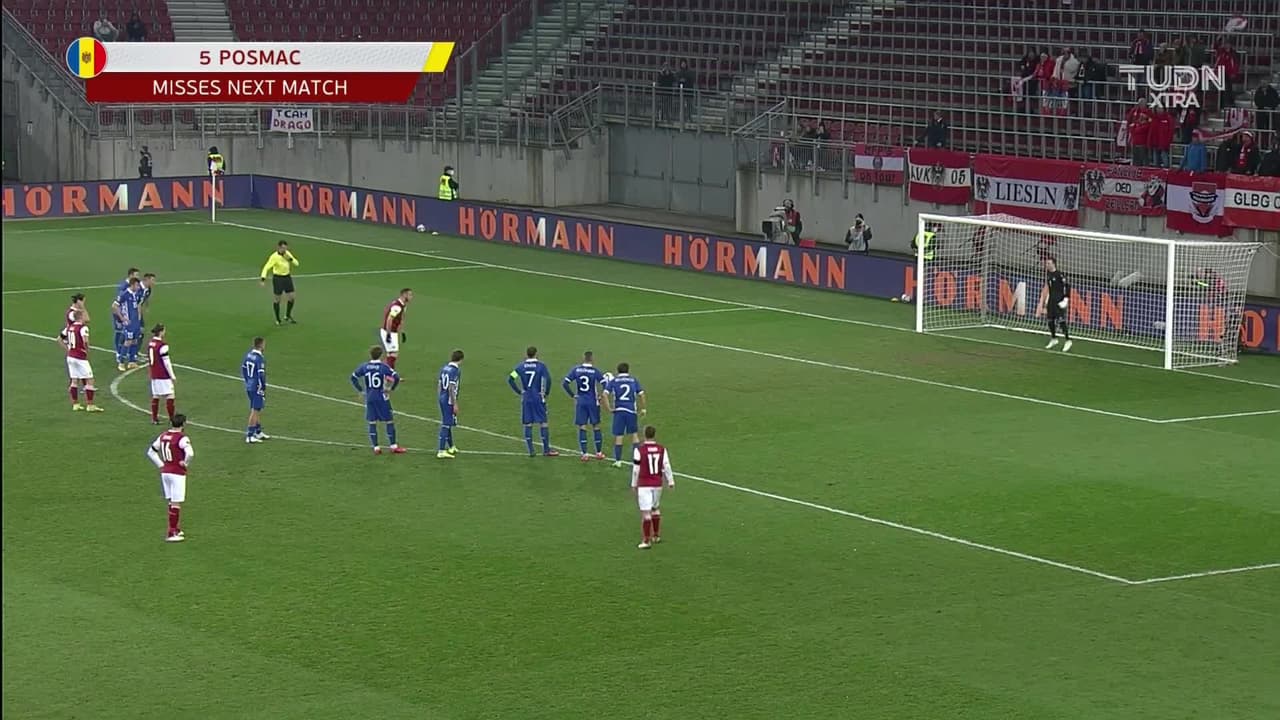 ¡Gol! Austria 3| Moldova 0. Marko Arnautovic (Austria) convirtió el penalti Disparo con la derecha disparo rastrero| junto al palo izquierdo.
