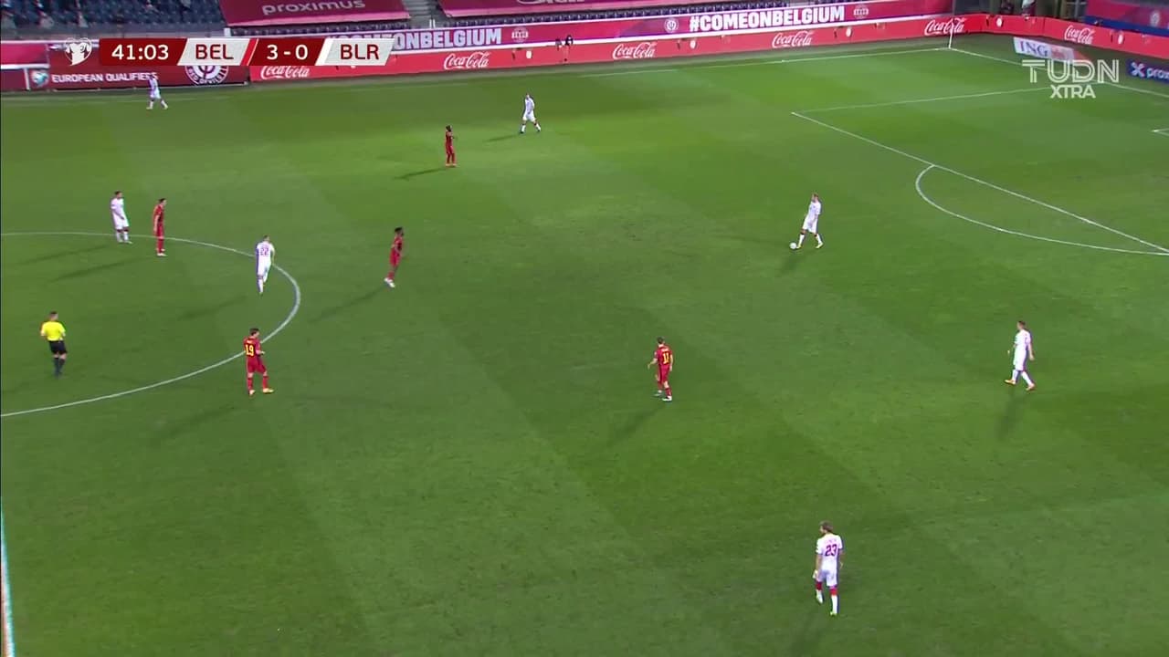 Contragolpe letal de los belgas que al descanso, ya ganan 4-0; Jeremy Doku fue el anotador.
